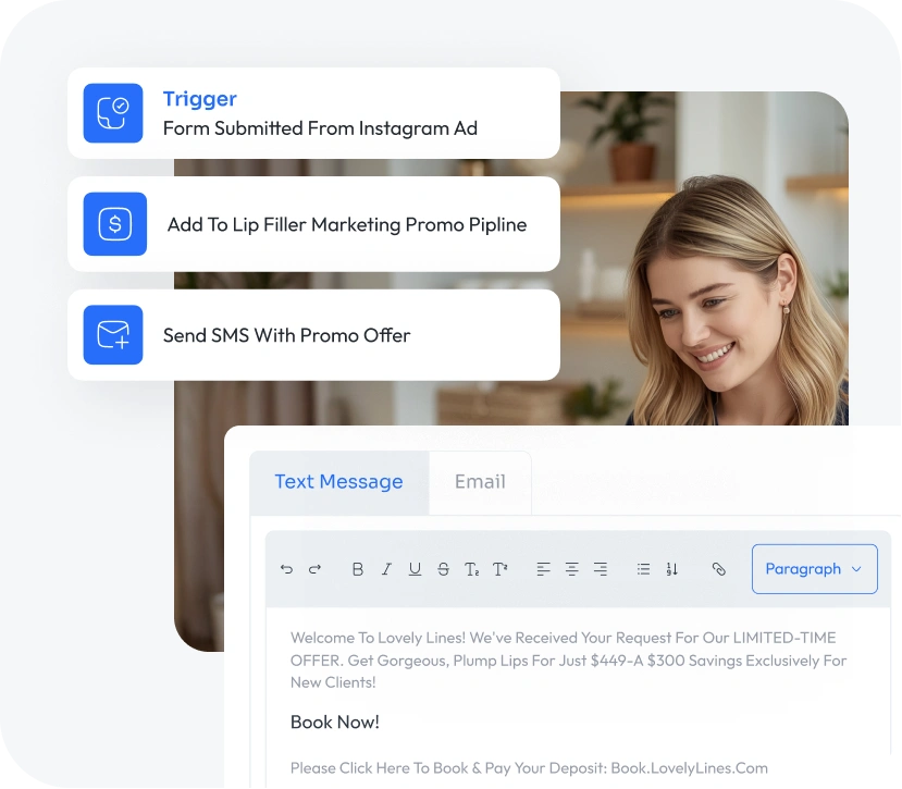 Grow your aesthetic practice with our fully integrated, all-in-one CRM, sales, and marketing automation platform that simplifies lead generation and strengthens patient loyalty. Through powerful, AI-driven tools and automations, your practice will stand out in a competitive aesthetic market.