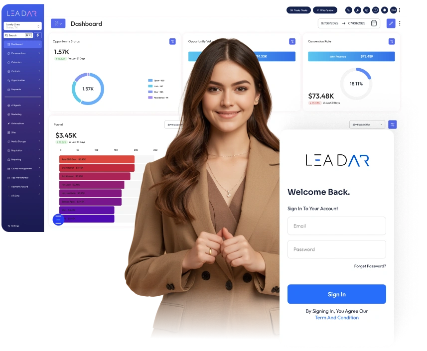 Drive new patient interest directly from social platforms like Facebook, Instagram, LinkedIn, and TikTok. With easy-to-deploy sales funnels, optimized forms, and built-in SEO tools, LeadAR helps your practice attract, capture, and convert leads 24/7. Every new inquiry is automatically captured and funneled directly into your sales pipeline and populated in your Aesthetic Record Leads tab.