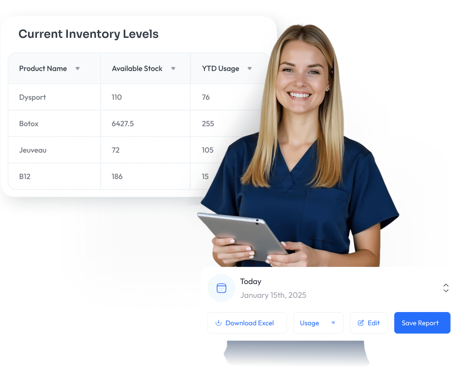 Understand your true cost of doing business with detailed inventory reporting. Every vial, syringe, and retail product is tied to procedures, lot numbers, and providers, giving you full traceability and accountability. From cost-of-goods to usage patterns, Aesthetic Record connects inventory directly to financial outcomes.