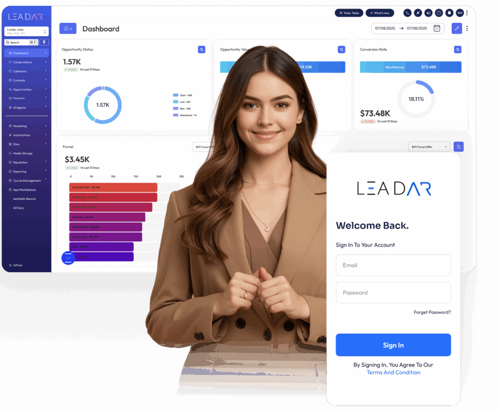 Drive new patient interest directly from social platforms like Facebook, Instagram, LinkedIn, and TikTok. With easy-to-deploy sales funnels, optimized forms, and built-in SEO tools, LeadAR helps your practice attract, capture, and convert leads 24/7. Every new inquiry is automatically captured and funneled directly into your sales pipeline and populated in your Aesthetic Record Leads tab.
