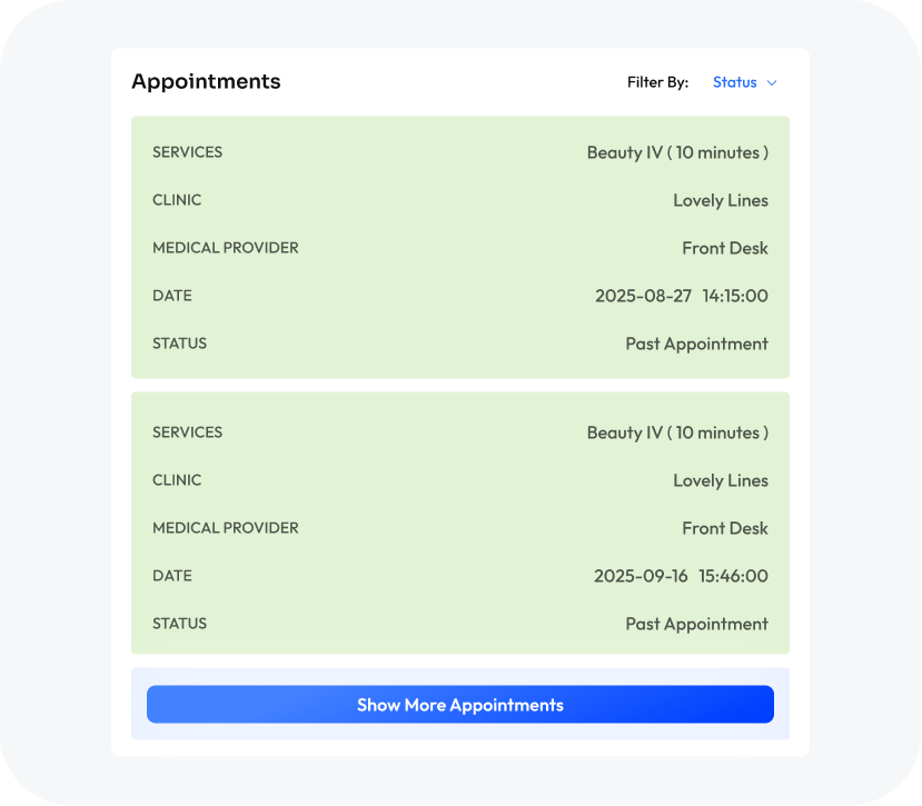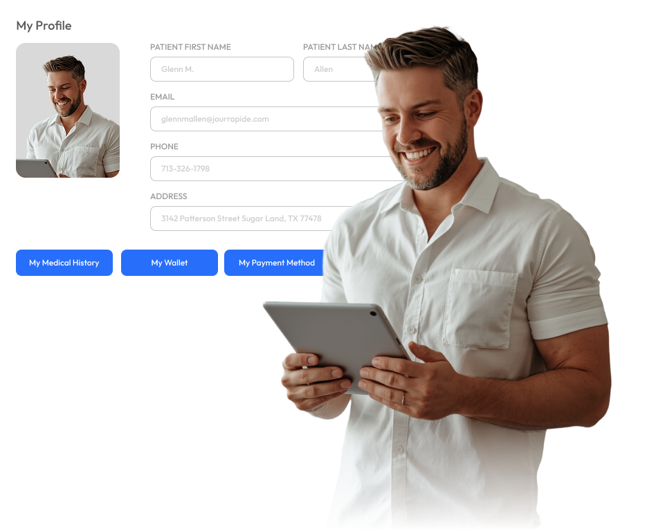 The Patient Portal is seamlessly integrated with the Patient Wallet. Patients can manage their stored payment methods, view their membership status, and even make payments for outstanding balances or secure deposits for future bookings, all within a single, secure environment.